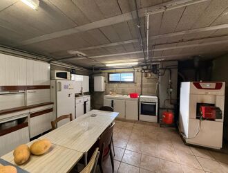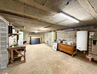 Le sous-sol total constitue un véritable atout : il comprend un garage pouvant accueillir deux véhicules, un atelier faisant également office de cave, ainsi qu’un espace aménagé avec point d’eau.