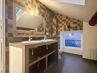 Les chambres disposent de cheminées décoratives pleines de cachet. Les pièces de vie sont sublimées par des poêles installés dans d’anciennes cheminées en marbre. Parquet ancien et mosaïque d’origine viennent parfaire le charme authentique de l’ensemble.