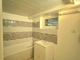 Le sous-sol aménagé constitue un véritable espace indépendant comprenant un séjour avec coin cuisine, une chambre, une salle de bains et un WC indépendant.